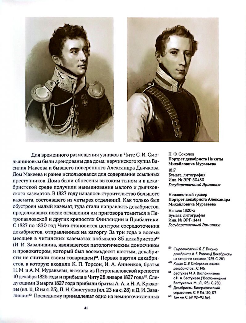 Книга рассказывает о судьбах декабристов, сосланных в Сибирь на каторгу и поселение. На основе большого историографического материалы, мемуарных и документальных источников, а также памятников изобразительного и прикладного искусства из собрания Государственного Эрмитажа рассказывается о нелегкой жизни декабристов в Сибири, прослеживается их тридцатилетняя история с момента заключения в Петропавловской крепости до амнистии. Уделено внимание подвигу жен декабристов, добровольно последовавших за мужьями в Сибирь и ставших для узников связующим звеном с окружающим миром. Книга богато иллюстрирована изображениями предметов из эрмитажной коллекции. Ряд экспонатов впервые атрибутирован как принадлежащих декабристам, а некоторые документы вводятся в научный оборот впервые.